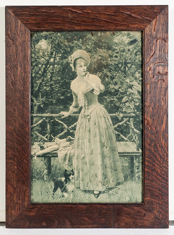 | Beautifully figured Walnut example, ca.1910. Shown with the original print that was in the frame. It is 13 x 17 5/8 inches od. and has a 9 1/4 x 14 inch pic. size. #25-422, $120.00 | |