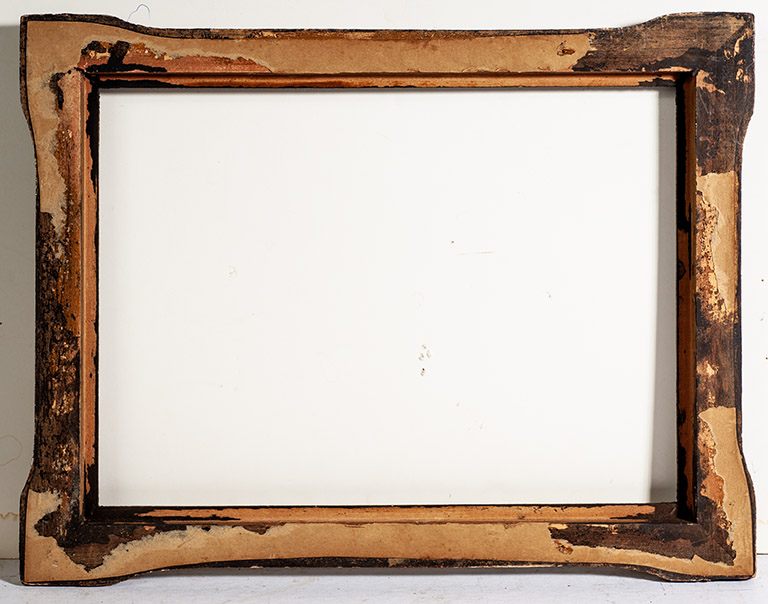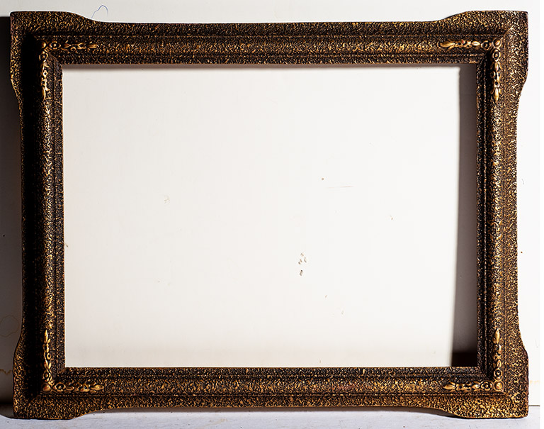 | Ca.1915, Taos-style frame (The Taos-style was an American Southwest design from the Arts and Crafts school) gessoed wood frame with hearts in the corners on gold in excellent condition. It is 11 x 15 1/4 inches and has a 9 3/4 x 14 inch pic. size, #19-687, $60.00 | |